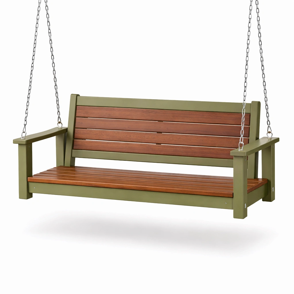 Dondolo da giardino in legno e metallo verde e marrone