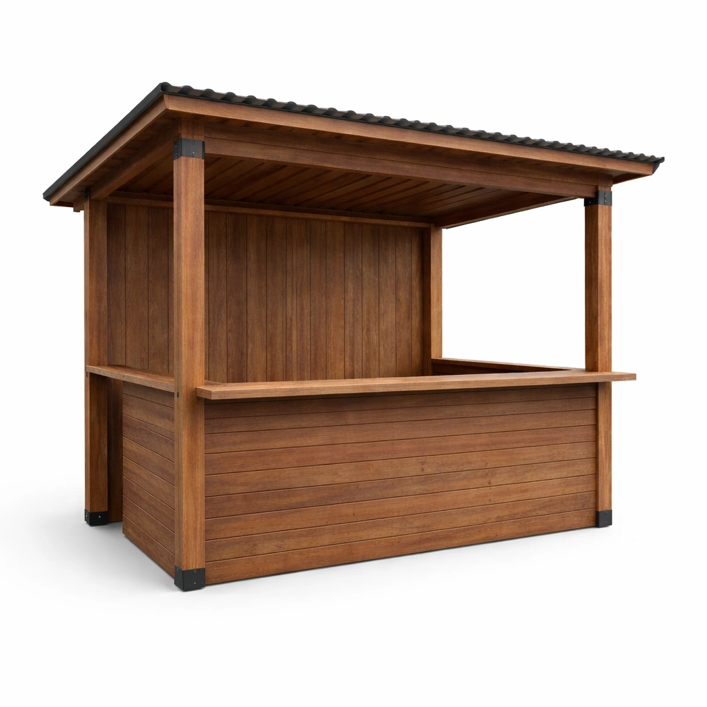 Struttura principale realizzata in legno di pino con tetto in lamiera ondulata.