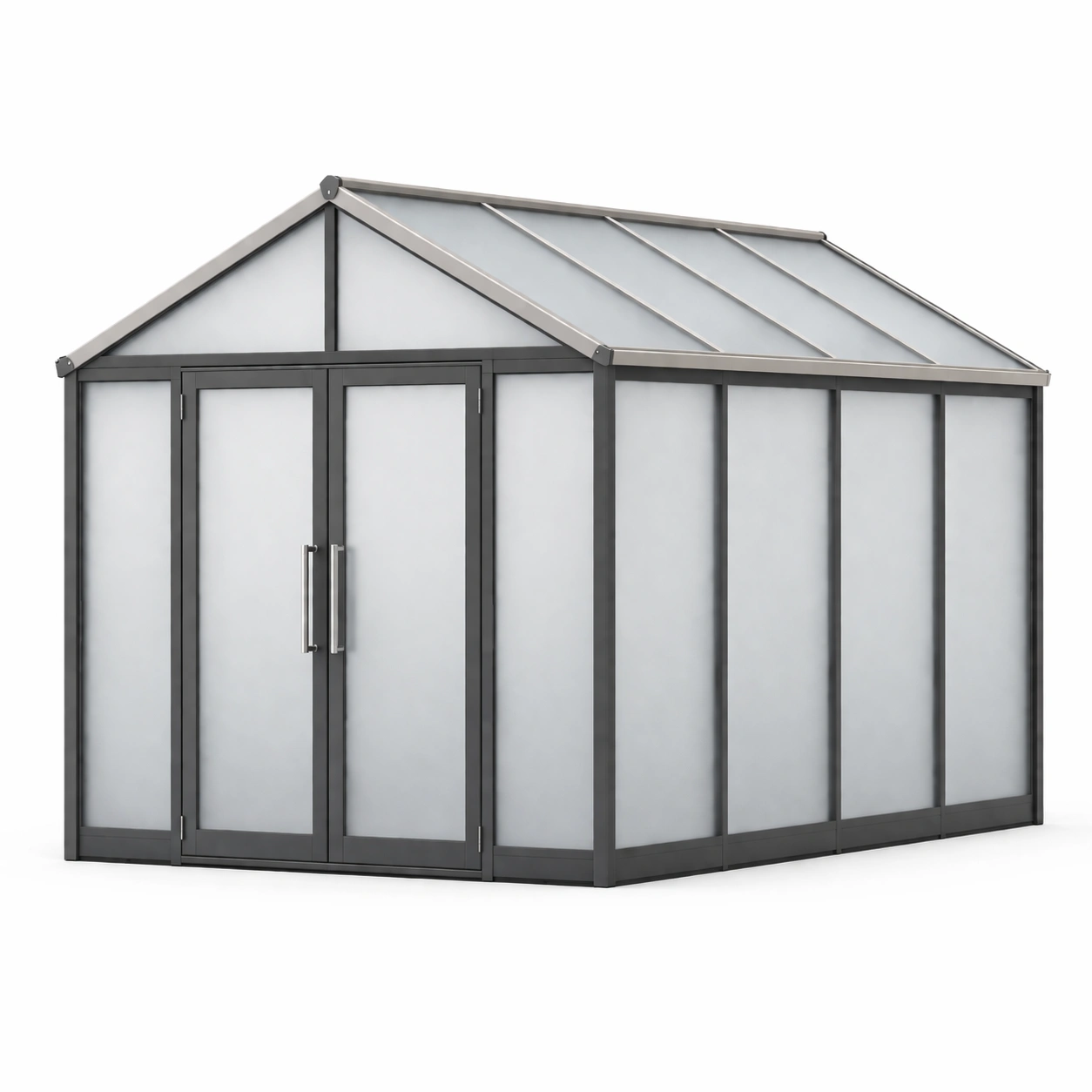 La serra è realizzata con una struttura in alluminio e pannelli di policarbonato da 6 mm, progettata per la coltivazione di piante. Dimensioni: 3 m di lunghezza, 2 m di larghezza e 2 m di altezza. Peso totale di 80 kg.